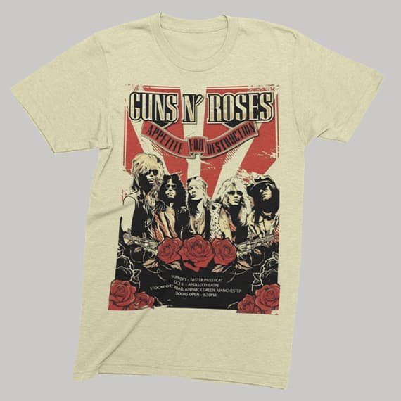 Camiseta Guns N’ Roses Clásica – El ícono que nunca muere Riffs legendarios, actitud salvaje y una estética que marcó época. Esta camiseta en algodón peinado 180g rinde homenaje al lado más auténtico y clásico de Guns N’ Roses. Un diseño que mezcla nostalgia, rebeldía y estilo eterno, ideal para quienes entienden que el rock no se viste… se vive.